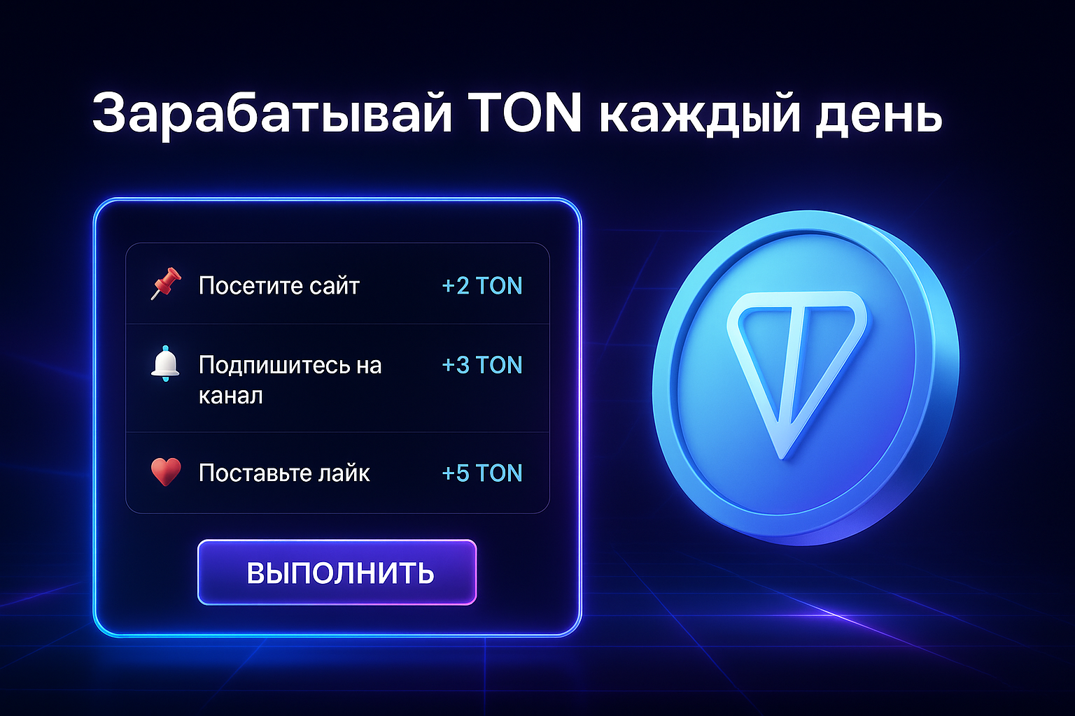 Выполняй простые действия — получай TON.